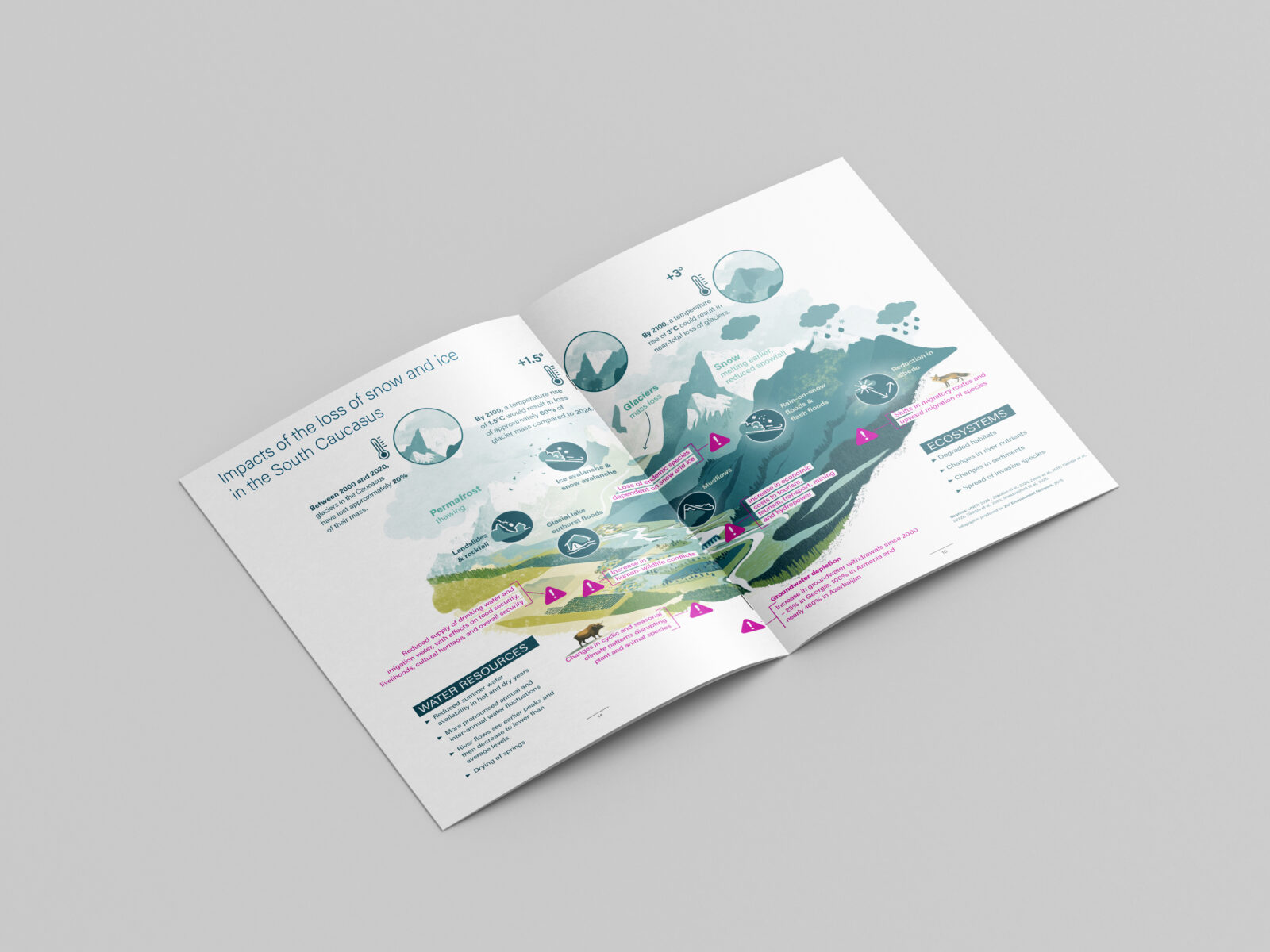 This regional policy brief discusses the conditions of the declining snow and ice cover in the South Caucasus, identifies the needs for improved monitoring and adaptation, and supports stronger advocacy for the region and its communities. Zoï developed the infographic on the impacts of the loss of snow and ice, and designed the brief.