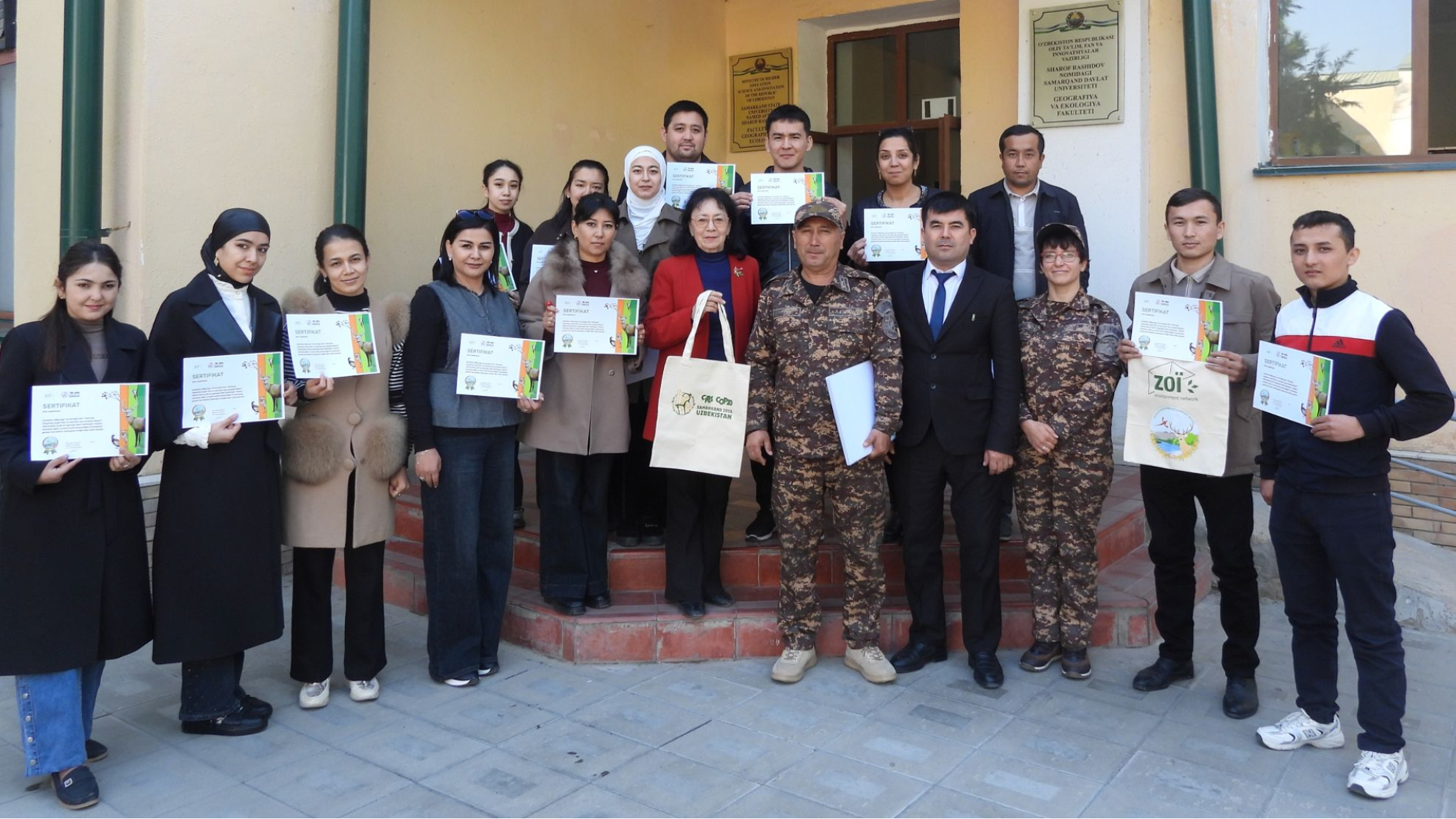 As part of this work, the OSCE supported the engagement of local communities and youth in conservation in the southern regions of Central Asia, including Uzbekistan, Tajikistan, and Turkmenistan. Thanks to the efforts of local facilitators – Alexandra, Jamila, Merdan, and Sukhrob – an awareness-raising campaign at the local level and lectures at schools and universities reached more than 300 community members, including youth and women.